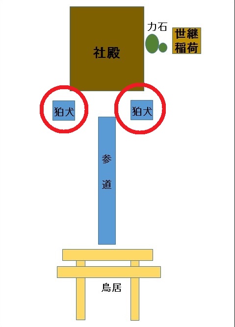 筑土神社の狛犬は、筑土神社の鳥居を潜り、参道を進むと、社殿の前に置かれています。