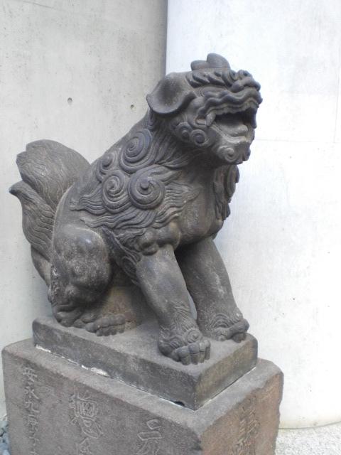 筑土神社の狛犬の台座には、安永年間の築土神社の別当の銘が刻まれています。