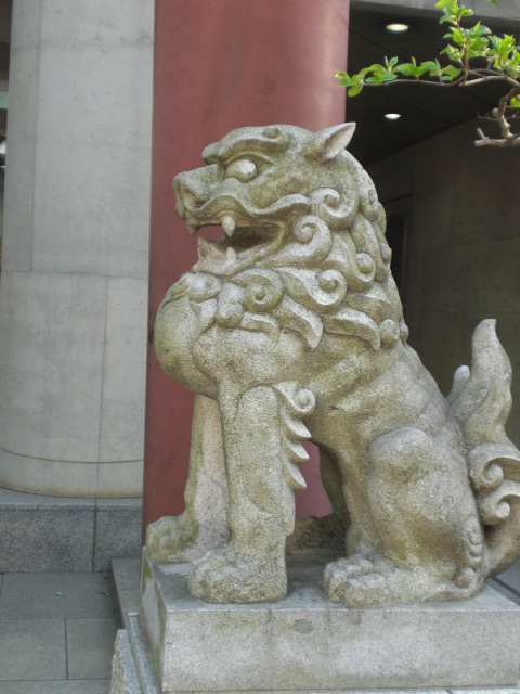 鳥居前には、もう一対狛犬がありますが、平成6年の新社殿起工に伴い作製され、新しいです。