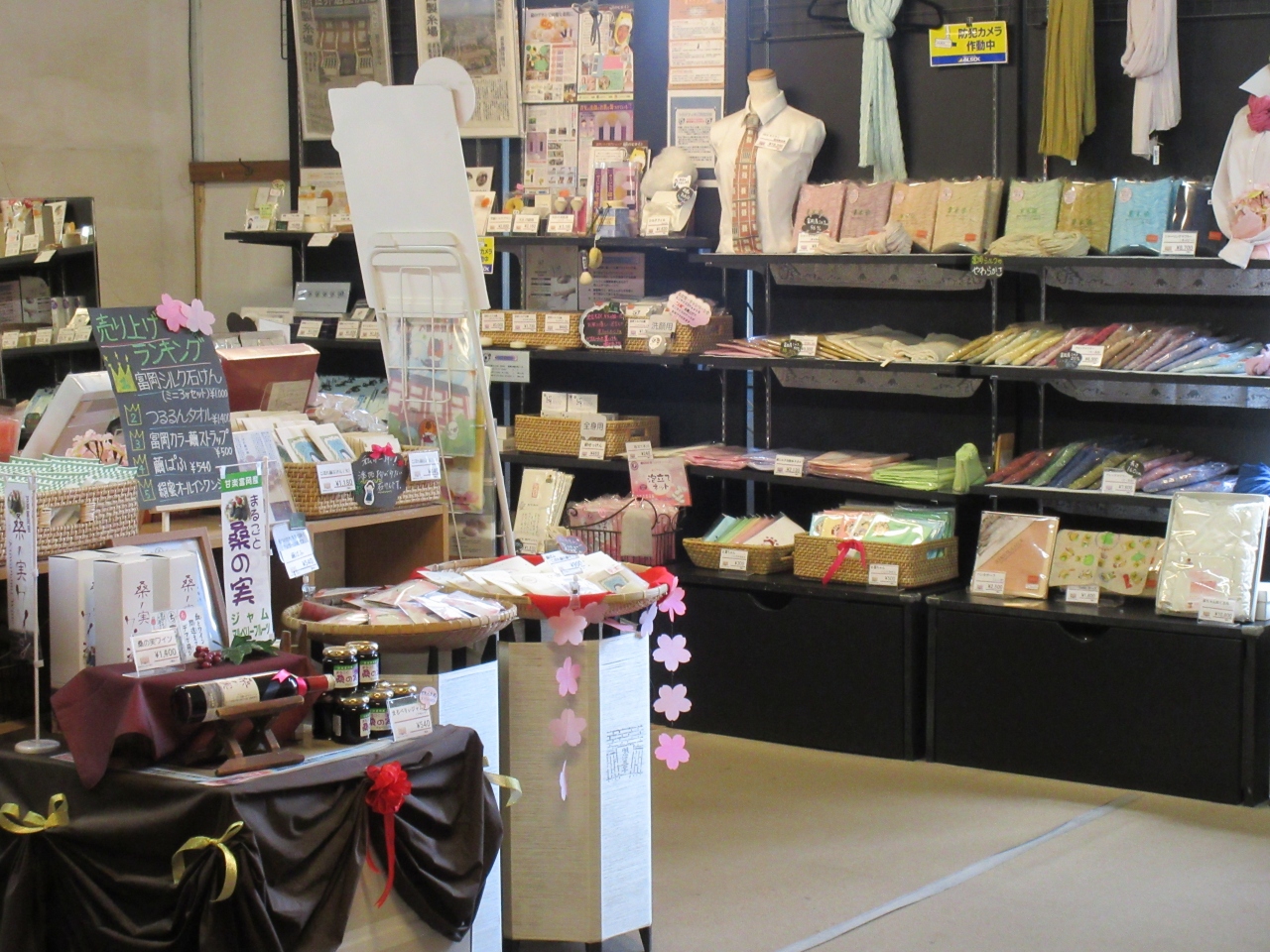 富岡製糸場の東置繭所の1階入口の右側にあります。東置繭所1階左側にあるシルクギャラリーは美しい各種スカーフやネクタイなどを販売していますが、富岡製糸場売店は絹製のスカーフなどの他に群馬県銘菓やキャラクターグッズなどの小物が売っています。製糸場が題材になった本も売っています。目の保養にシルクギャラリーの商品を見て、手軽な土産物を探しに売店を訪れてはいかがでしょうか。