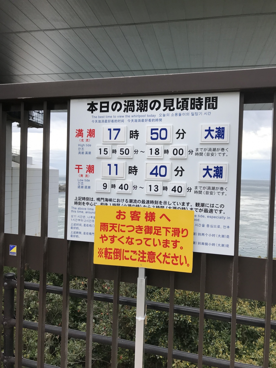 渦潮は、いつでも見られるわけではないので、予め潮見表をチェックしてからの訪問をお勧めします。潮見表は、インターネットのHPで数か月先のものまで確認できました。
