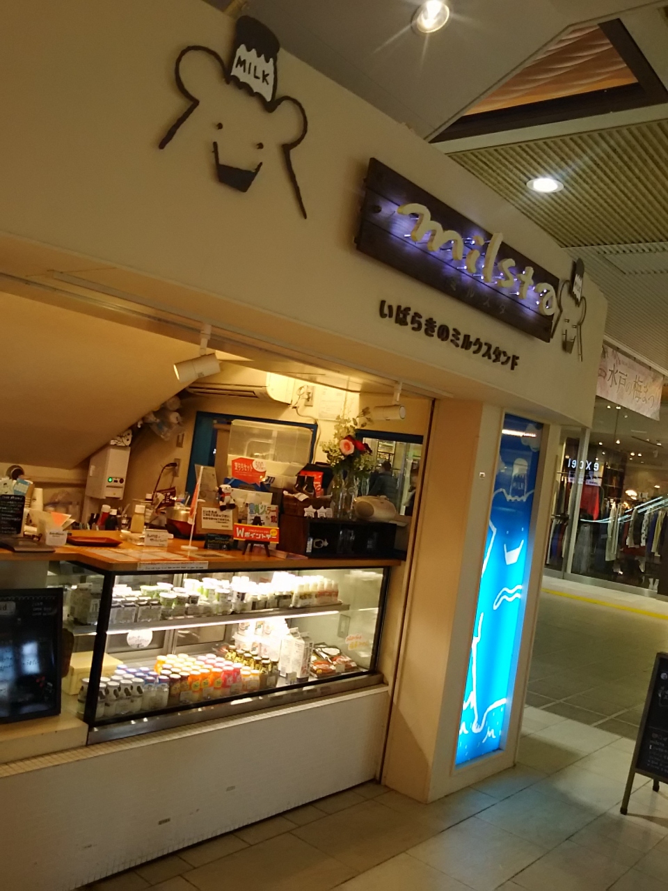 場所がなかなか分かりにくいを見せたが JR 水戸駅の改札を出て突き当たりを右に行くと輸入食品を扱っているジュピターというお店がある その前ぐらいの場所にこちらのミルクスタンドがある ミルクだけではなくて他にも色々ある ふとひかれてミルクを飲んだがとても冷えていて濃厚な味わいの美味しいミルクだった