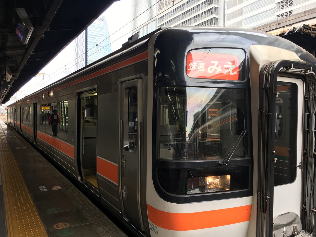 名古屋から伊勢まで行くのに、近鉄特急よりも1000円ほども安く、所用時間もそれほどの差がなかったので、快速みえに乗ってみました。始発の名古屋駅からの乗車でしたが、出発10分前では2両編成の車両は満席でした…。途中、乗客はどんどん下車するので座れました。無人の駅もいくつかあるようで、ローカルな雰囲気が良いです。
