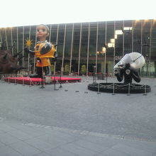 広場には、週末にイベントなどが開催されており、また水辺やホールなどもあります。