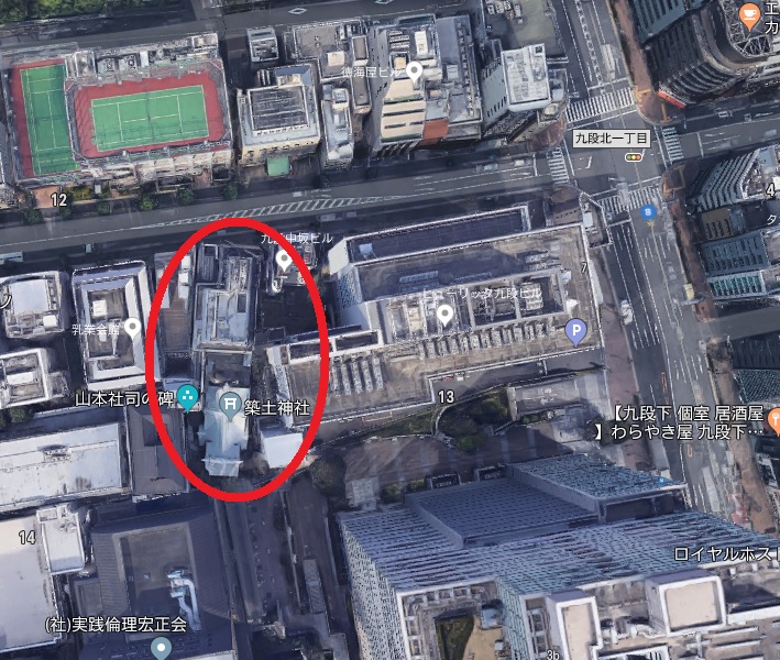 筑土神社は、当初、江戸城の大手門付近、その後、田安門付近、現在は九段にあります。