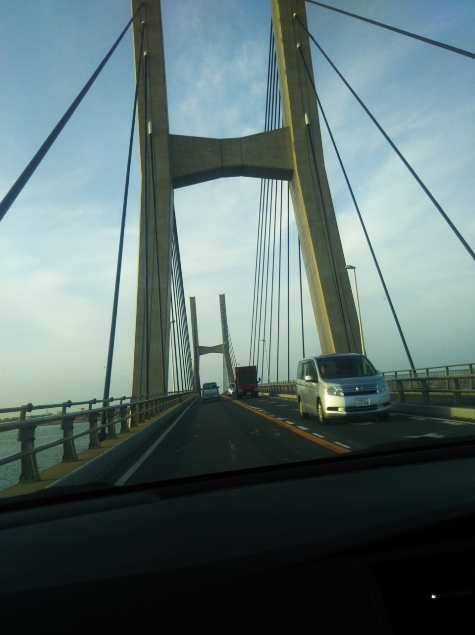 犬吠埼から銚子港を観光して東京都内に戻るため、近くの潮来インターに向かう際に通ることが出来ました。大きな立派な橋で、川を渡りきると茨城県に入ることができます。海や河口を見ることができ、景色はとてもきれいでした。
