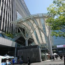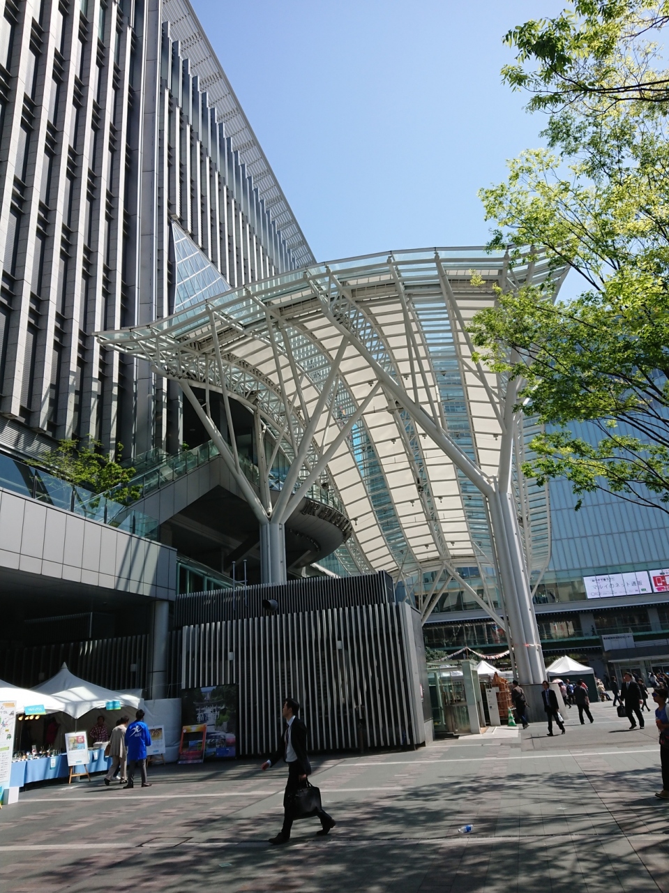 となりでは博多ファーマーズマーケットと称して、農作物の物品販売がおこなわれていました。冬はクリスマスマーットで、ホットワインを飲むことができました。黒田武士の像付近ではポタリングの自転車の組み立てをする人が。