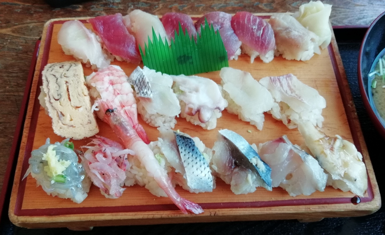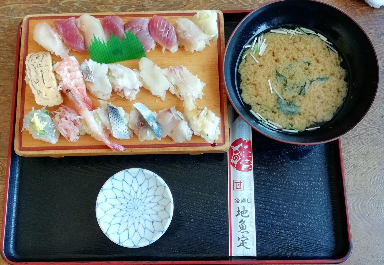 焼津駅から徒歩10分、焼津漁港にある金寿司さん。10ケ月ぶりのリピートです。狙いは12時までの限定握り20貫。道を間違えて5分前に到着、空席もあり無事、入店でぎりぎりセーフ。握り自体は小さいのでシャリの量としては10貫分くらいですが、色々なネタが味わえるのでオススメです。