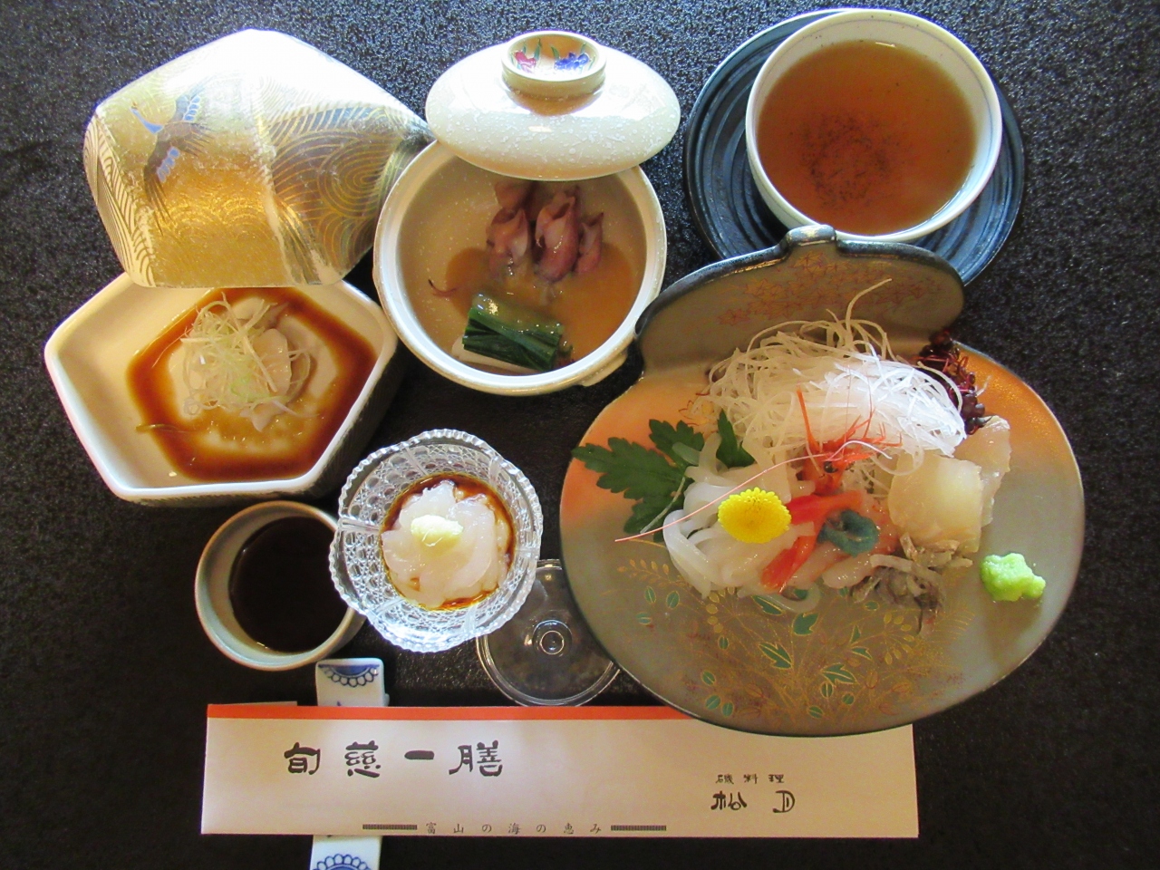 白海老は富山駅の「白えび亭」で食べるつもりだったのですが、老舗の松月さんの雰囲気といい、白海老尽くしのお料理といい、お城の桜より正に「花より福団子」で却って良かったとさえ思います。