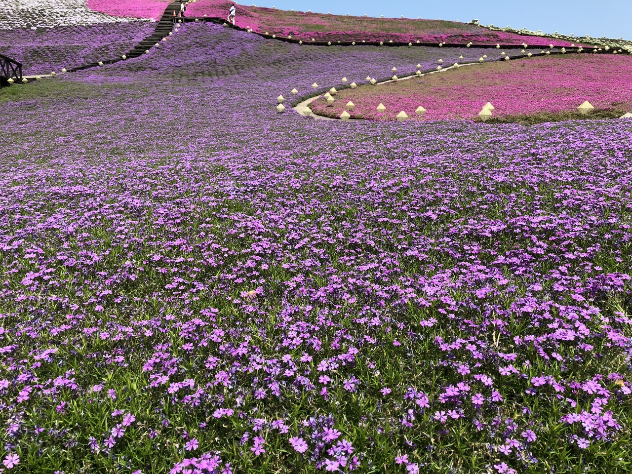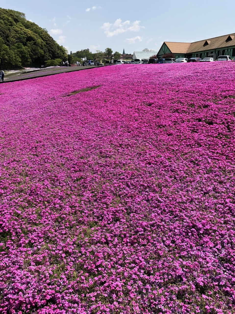 広大な敷地を生かして、薔薇やあじさい、芝桜やコキアなどが植えられ、季節季節の花を楽しめるようになっています。芝桜のピークは少し過ぎかけていましたが、十分に綺麗な光景でしたし、のどかな空間を満喫できました。