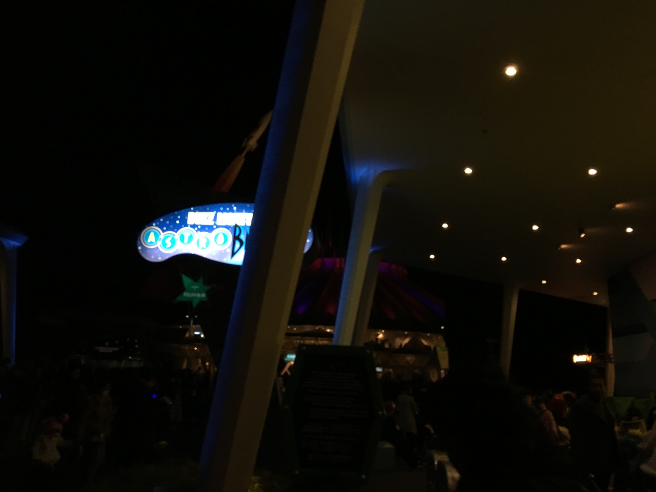 東京ディズニーランドのトゥモローランドにあるバズ・ライトイヤーのアトラクションです。夜のエレクトリカルパレードが終わった後に急いで行きましたが同じように行動する方が多かったのでスタンバイが60分に伸びていました。パレード後は道が通れないところもあるので注意が必要です。