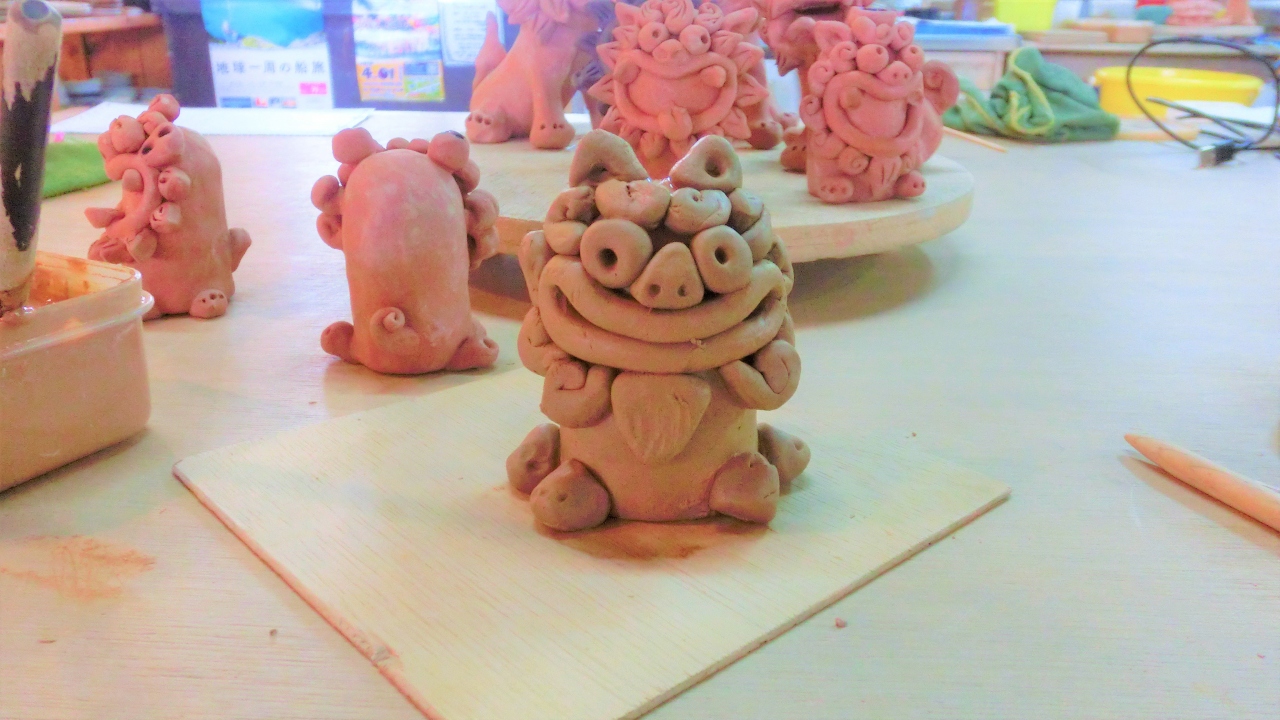 子供2人(7歳/3歳)にシーサー作り体験をさせました。2体で3500円のコースです。