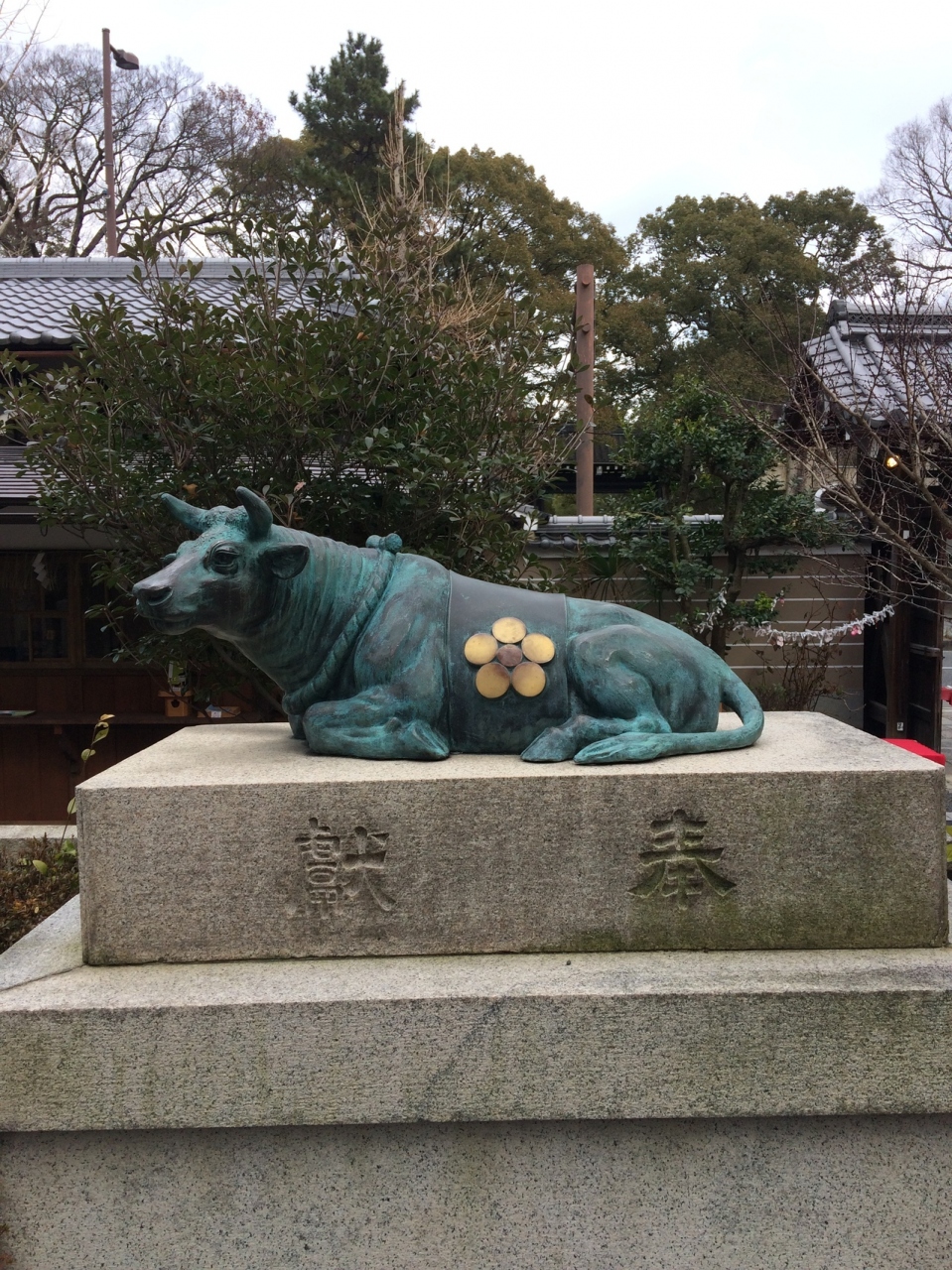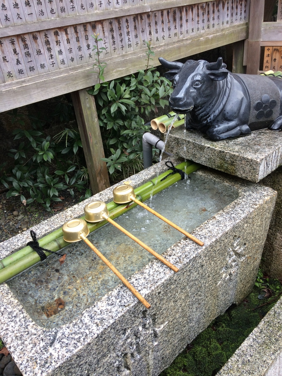 手水舎には牛。