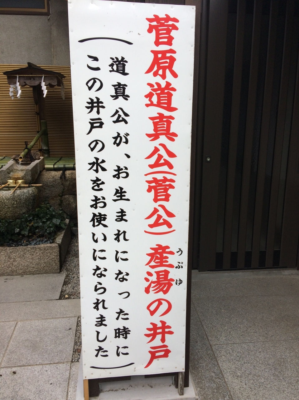 菅原道真公の出生地はハッキリしていないのですが、こちらには道真公が生まれた時に使った産湯の井戸があり実際に湯に触れることができます。
