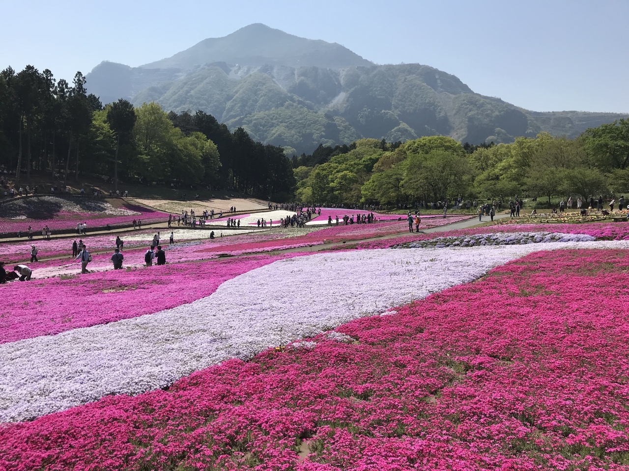芝桜を見に4/21の土曜日に行きました。10時前には横瀬駅に着くように行きました。横瀬駅から羊山公園までは20分ほど歩きます。芝桜の看板が道にあるので迷わず辿り着けます。わりときつい上りもあるので歩きやすい靴をおすすめします。羊山公園に行く途中や入口のあたりに芝桜の丘入場券が売っていて大人300円です。芝桜はまだこれからの部分もありましたが概ね満開できれいでした。思っていたよりも丘は小さめでした。近くで秩父の物産も売られていておそばやみそポテトなどが食べられました。帰りは西武秩父駅から帰りましたが、園内に道しるべがあまりなくてキョロキョロしました。西武秩父駅までも歩いて20分ほどでした。