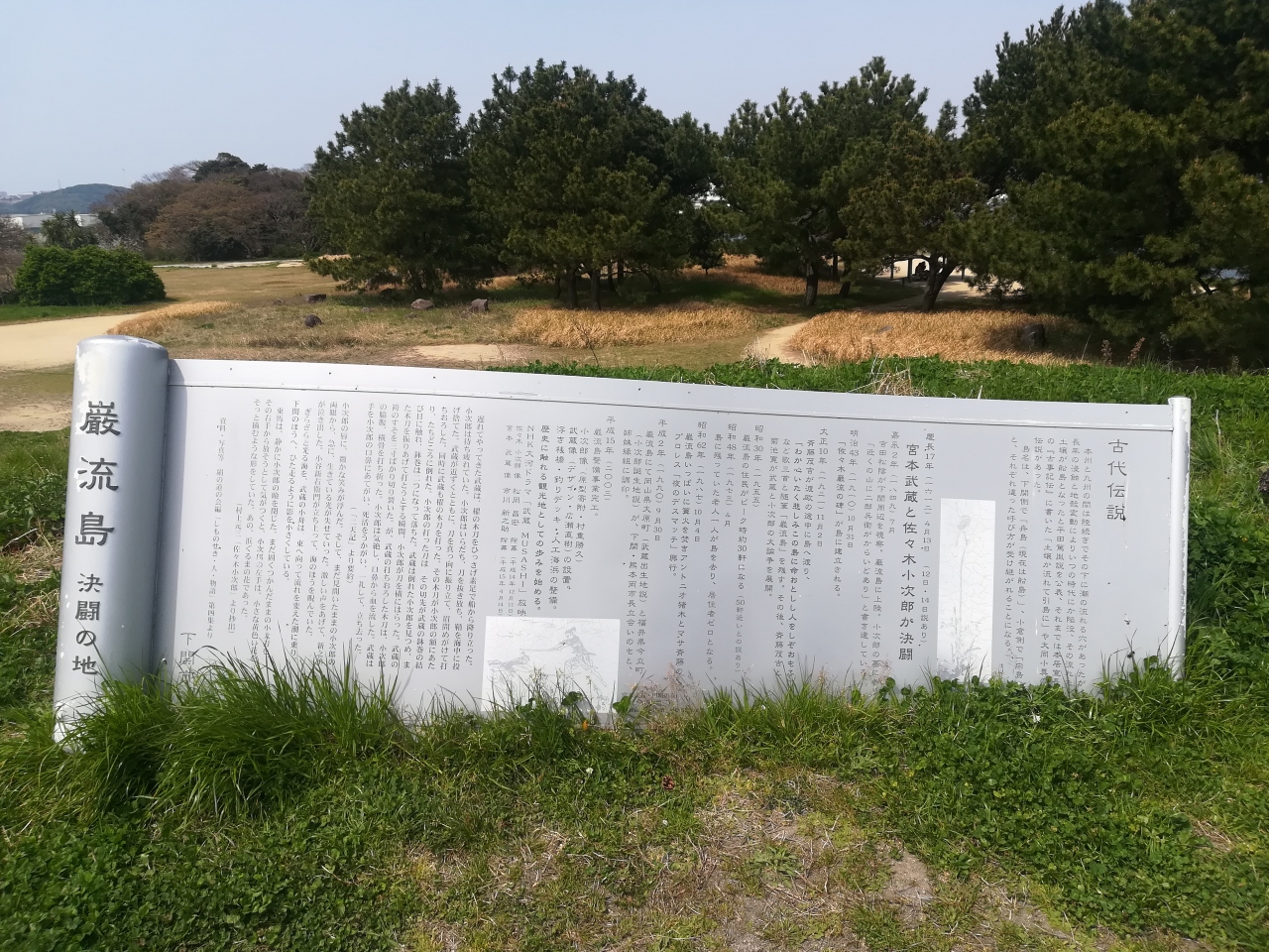 思ったより広かった巌流島ですが、さすがに決闘の像だけではもったいないとのことなのか、像の西側の部分が憩いの広場としてバーベキューができたり、イベント(コンサートなど)ができるように広場として整備されていました。