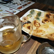 とりあえずジョッキがあるのと餃子4種盛を注文。