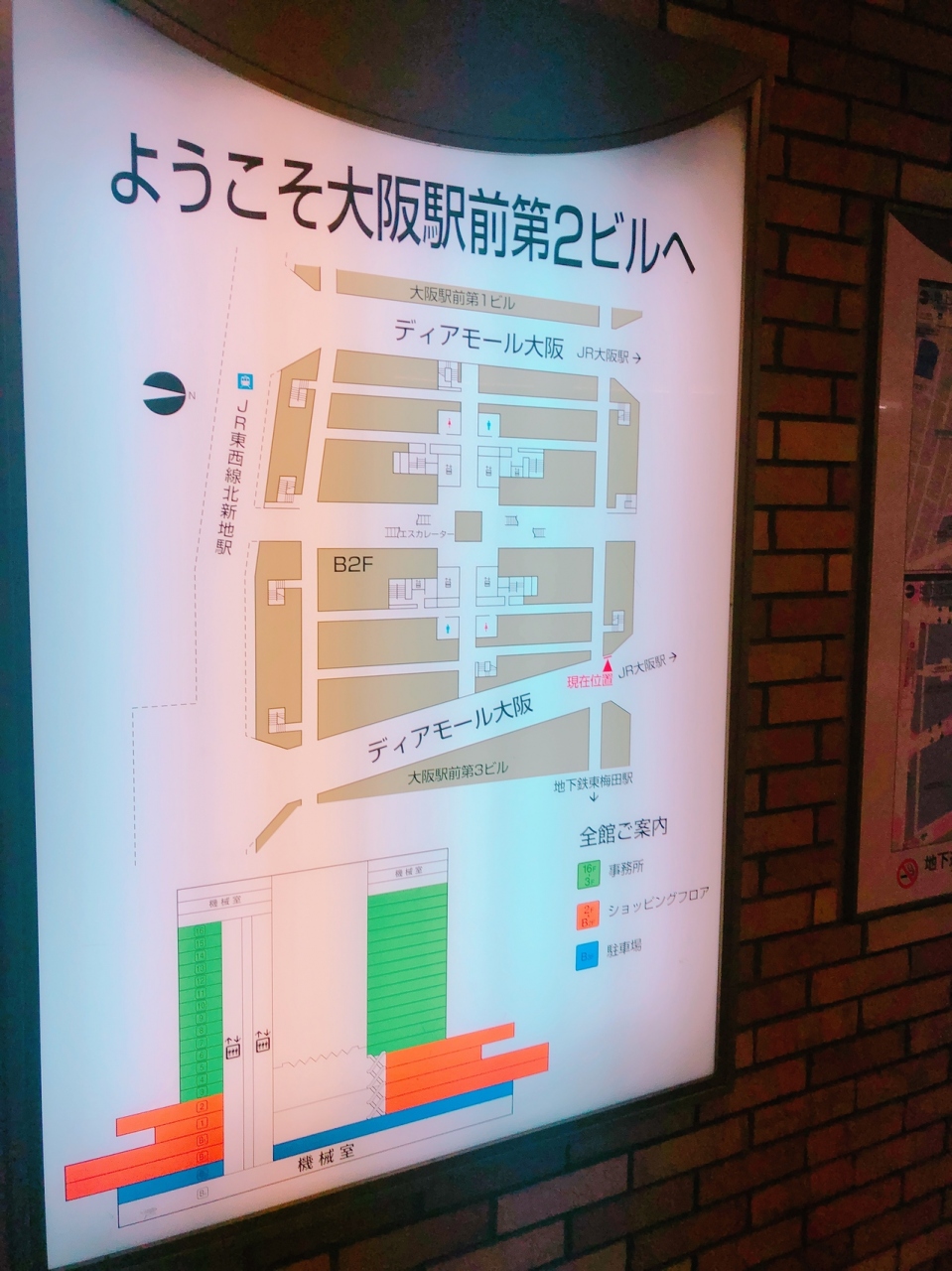 大阪駅前ビルは第1から第4まであり、その中の第2ビルは、地下以外は沢山の会社が入っておりますが、地下は金券ショップやレストランが並んでいるので、平日のお昼は結構社会人でいっぱいになっています。旅行者にはあまりお勧めしませんが、レストランは穴場なので、ぜひ行ってみてください!