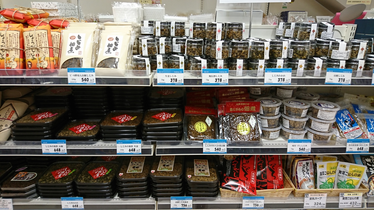 島根県のお土産がたくさんあり、特にしじみを使った商品が多いと感じました。