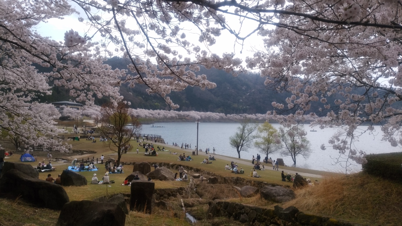 音戸の瀬戸に桜を見に行きましたが綺麗だったので、今日は昼から天気が崩れる予想で、見頃が最後になる土師ダムに行ってきました。今日は平日なのに駐車場が一杯で山の一番上に停めさされて帰りは雨の中頂上まで登ったので濡れてしまいました。ダムや周辺には6000本の桜があるそうで満開で見応えがありました。子供用の大型遊具があり、フリーマーケットや出店もあり、人の出入りがひっきりなしで、弁当持参のお年寄りやサイクリングを楽しむ子供達まで沢山の人でごった返していました。今迄何度か来たことがありますが、桜の満開時に来たのは初めてでしたが、6000本の桜は圧巻でした。