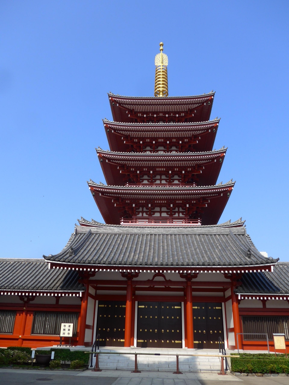 仲見世通りを通って正面に宝蔵門が見えてくる左手に綺麗な五重塔が見えてきます。宝蔵門をくぐると直ぐ左にありとてもバランスの良くて綺麗な建造物です。