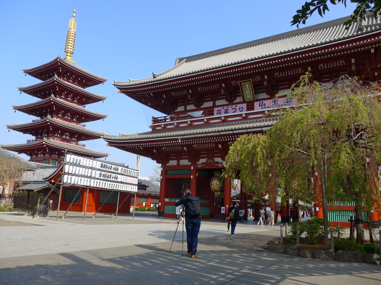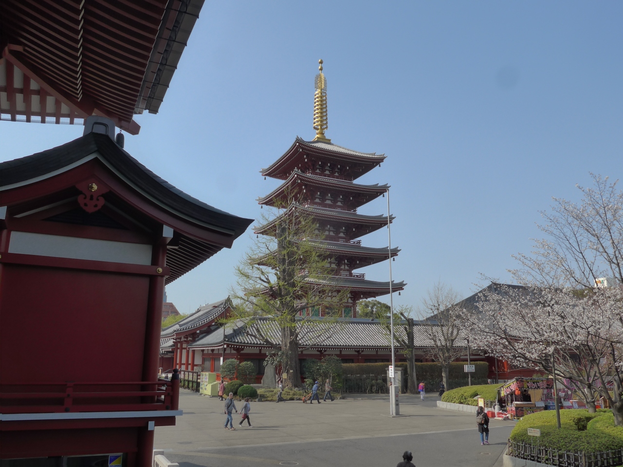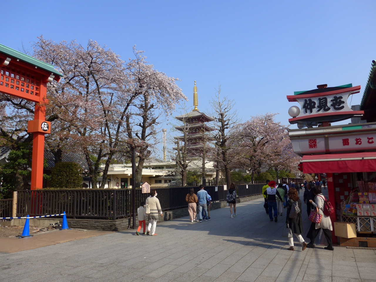 訪れた当日は浅草寺の桜まつり開催中で五重塔の右手には枝垂桜が満開でとても綺麗でした。