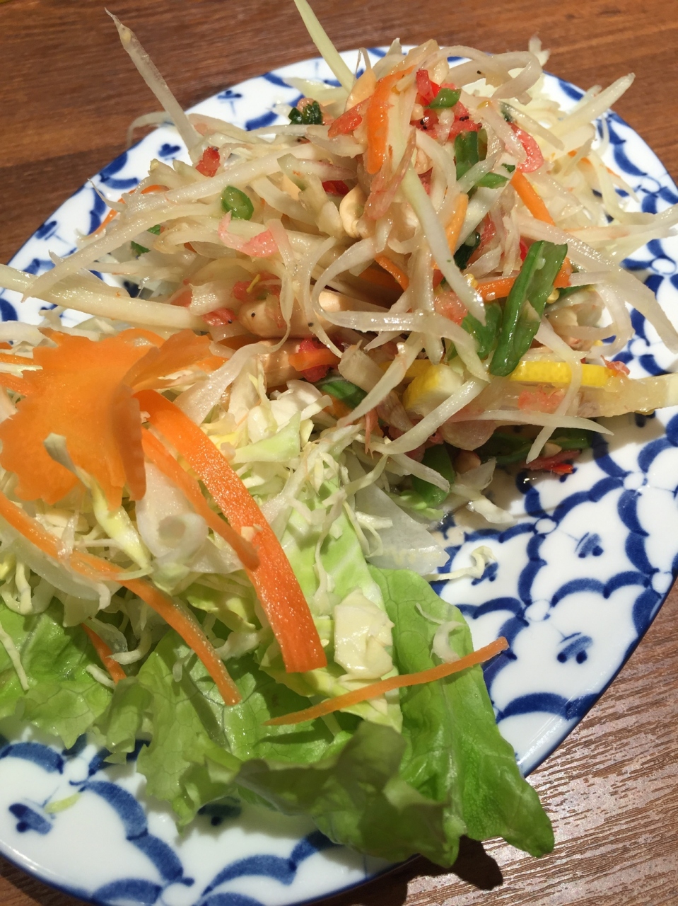 タイ料理で有名なティーヌンの店舗です。店内は屋台風な作りになってて、明日は背もたれがありません。さて、肝心のタイ料理は、いつ行っても美味しいです。一番美味しいのが、サラダ系。タイの本場の味に近い味が、安定的にリーズナブルにいただけます。週末の夜は混みます。