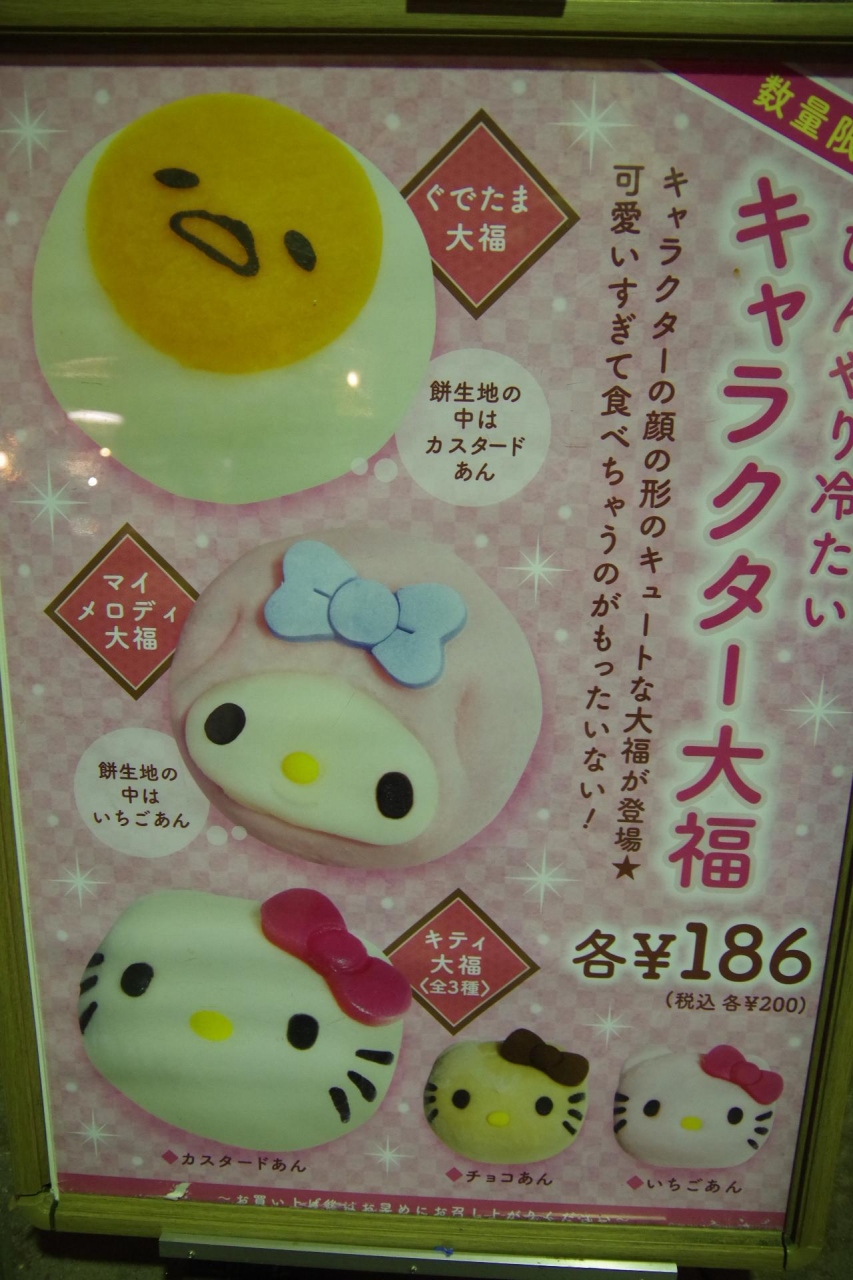 サンリオキャラクターの顔の形の大福が売ってます! 1つ200円で安い。