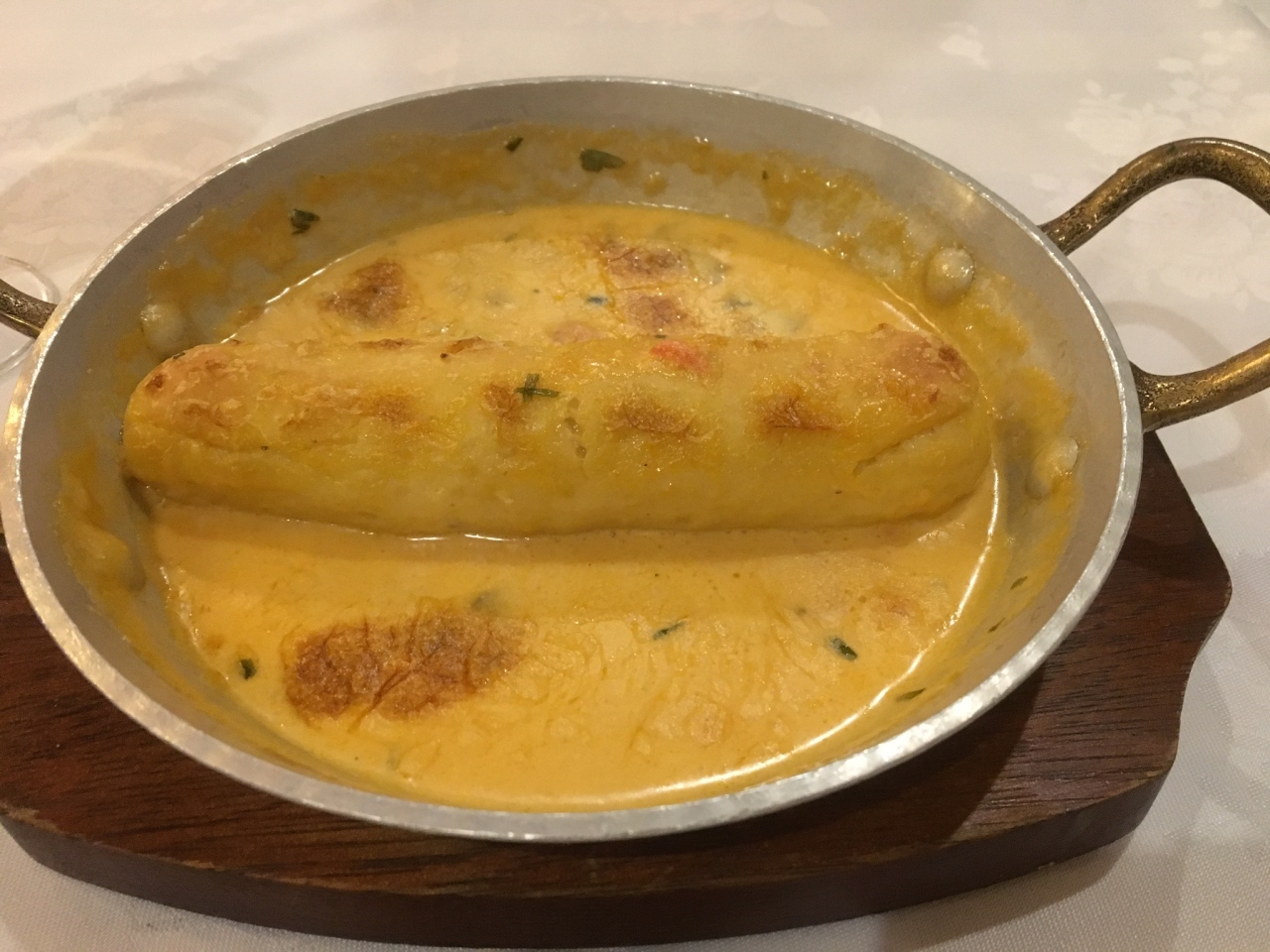 メインはクネル (魚のすり身) とフォアグラが中に入ったホロホロ鳥。