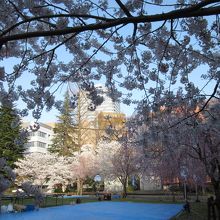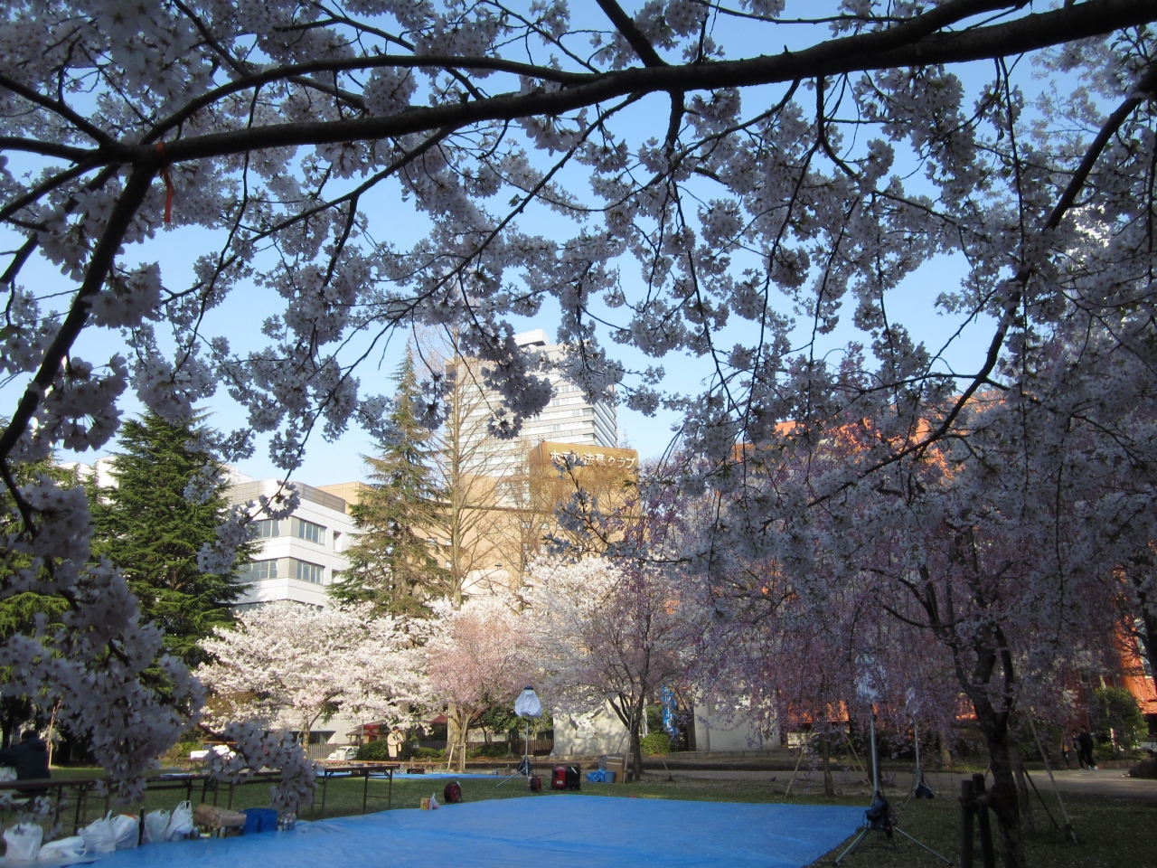 大きなビニールシートを広げ、ライトも設置されている方に「今日はお祭りですか」と聞くと「みんなでお花見」とのこと。