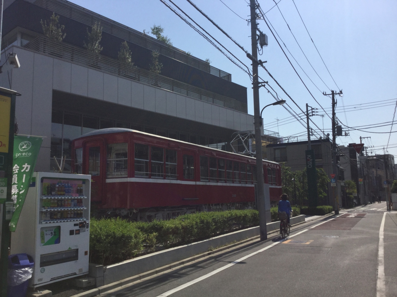 幼児を連れて落合南長崎駅から徒歩10分弱、住宅街の中に真っ赤な京急の車両が突然現れます。