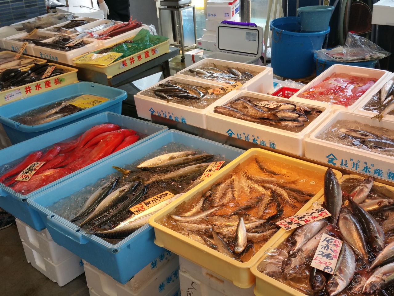三浦半島の長井港そばにある直売センター。店頭では、地場野菜が並べられています。店内では鮮魚が色々あります。お願いするとその場で魚を捌いて貰えるので、魚が捌けなくても安心です。ここでは500円で買える海鮮丼があり、かなりお買い得です。2階にテーブルがありますので、ここで海鮮丼と店頭で販売しているつみれ汁を買えば最高のランチが食べられます。