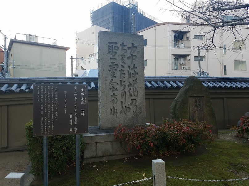 すぐ近くに句碑がある生田花朝のお父さんで、この句碑の字を書いたのもすぐ近くに筆塚がある菅楯彦と、繋がりのある大阪人の碑が並んでいるのは面白いですね。