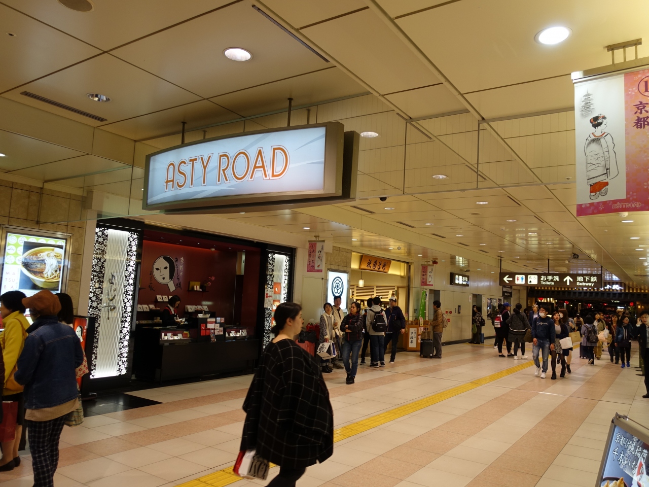 京都駅八条口近くのレンタカーオフィスで車を返却し、新幹線の発車まで時間があったので、車内で食べる菓子類や飲み物をアスティで物色しました。