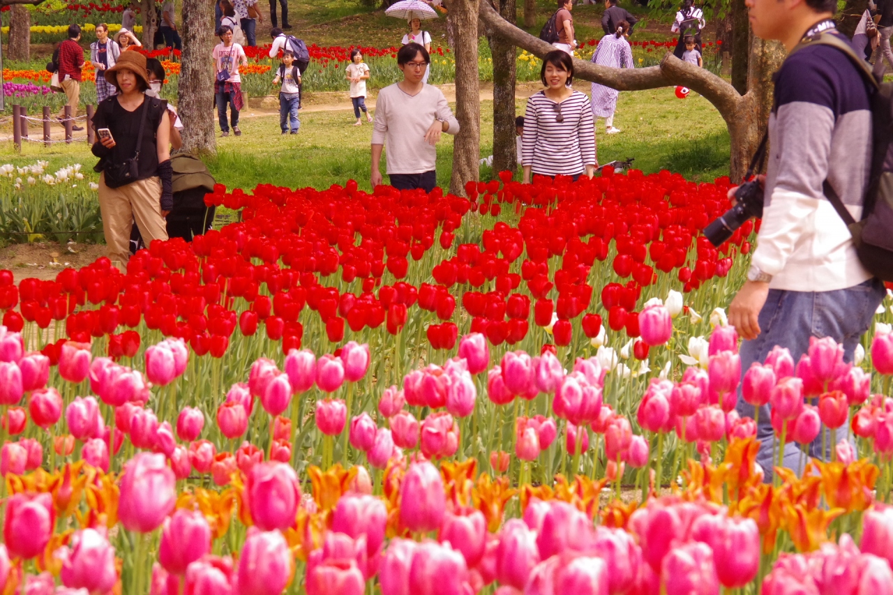 チューリップは見頃だったのはほんの一画のみで、太陽の塔が見える場所のチューリップは既に終わってて残念! 公園内はかなり広いようなので、たどり着くまでにかなり歩かないとならないと思いますが、次回は花の丘に行ってみたいです。