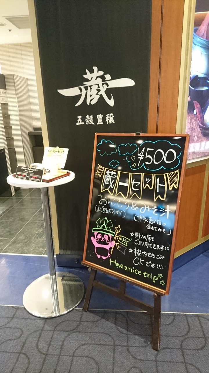 保安検査場通過後に、おにぎりを買うことができます。また、注文してから海苔をまいてくれます。サイズは小さめですが、旅行先で初めてのものを食べることを考えるとちょうどいいかもしれません。