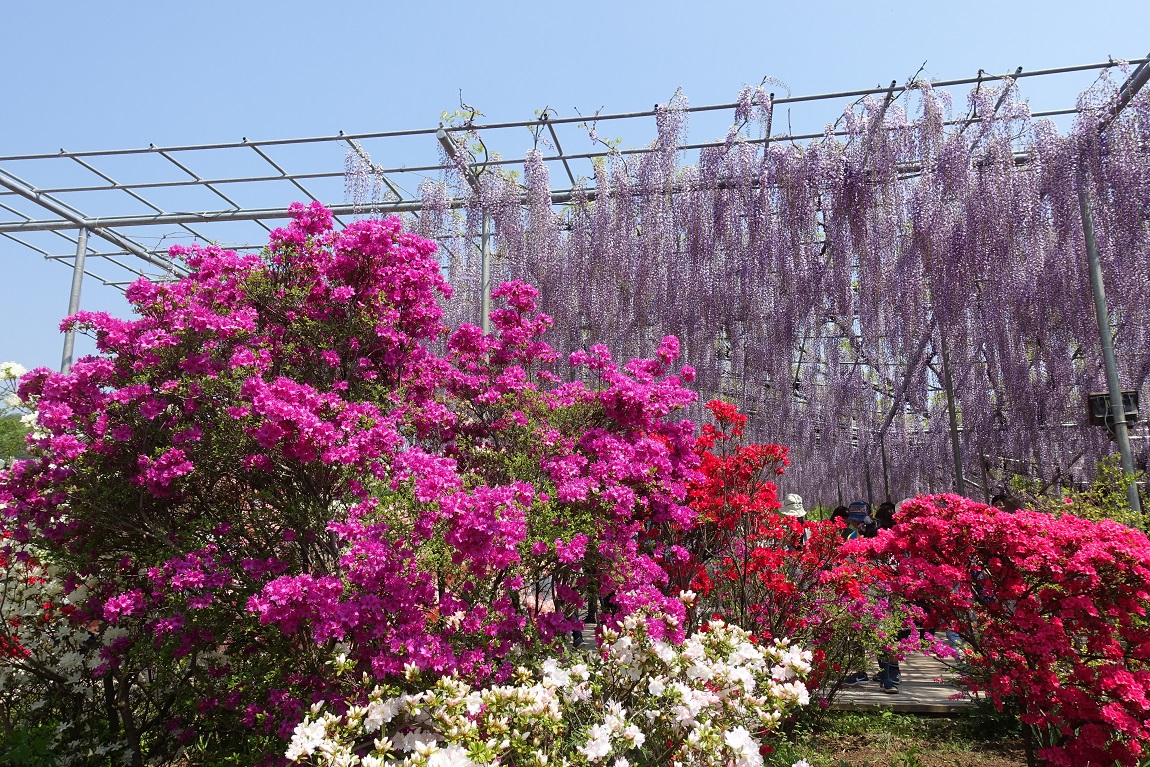 4月にJRあしかがフラワーパーク駅が開業したので、電車でのアクセスが抜群に良くなりました。1時間半ほどかけて、パーク全体を見て回りました。4月中旬のこの季節は、5つほどある藤棚を中心に、色々な色のつつじも楽しむことができました。地元の名産を楽しめるフードスペースもたくさんありました。