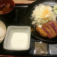 前は行列ができてた!?らしいので、友人がわざわざ予約入れてくれましたが、いつの間にか私たちしかいませんでした。牛カツの定食かローストビーフ丼がグラム数やトッピングで料金が違います。カツと丼の両方食べられるセットもあります。今回はヒレカツの100グラムセット、山芋付で1480円。キャベツとご飯はお代わりできるそうです。お肉はレアで、ヒレなので柔らかかったです。