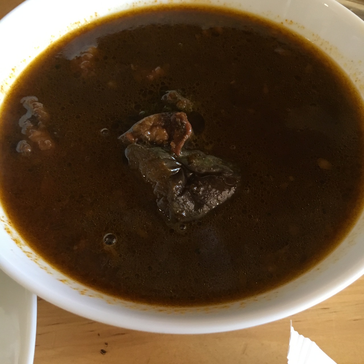 牛すじのカシミールカレーを頂きました。サラッとしたスープのようなルーで、スパイスの溶け込んだ味わい深いカレーでした。辛さは選べるのですが、初めてので「普通よりちょっと辛いくらい」で3に。私は辛いけどおいしい!と感じるちょうどいい塩梅でした。美味しいので、お肉がもうちょっと入ってると嬉しいかな。