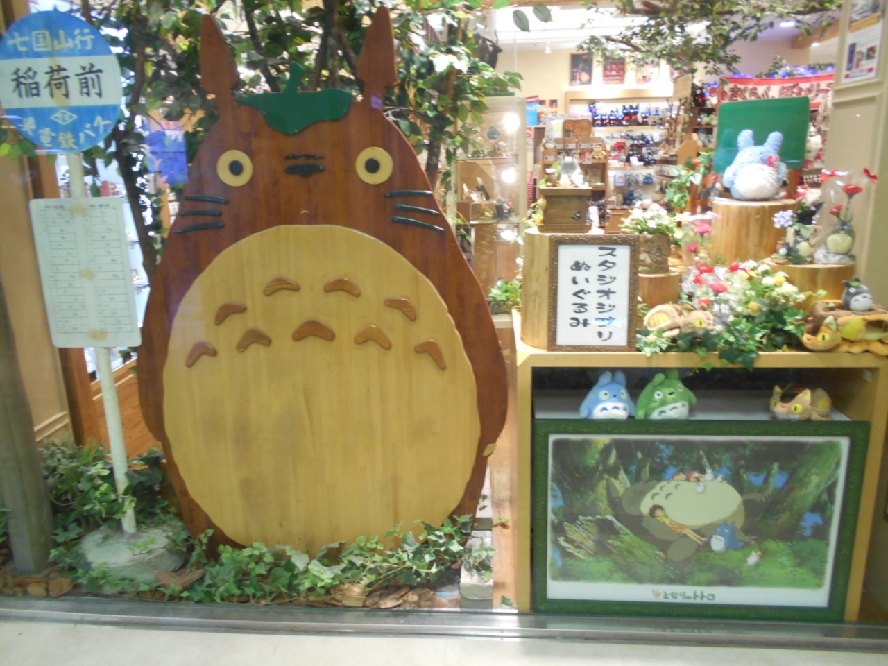 一目でジブリのショップとわかります。トトロの大きなぬいぐるみが店頭にあったと思います。小さいフィギュアやマスコット、ぬいぐるみ、その他いろいろ、好きな人にはたまらないと思います。お店の中を見ていると癒されます。