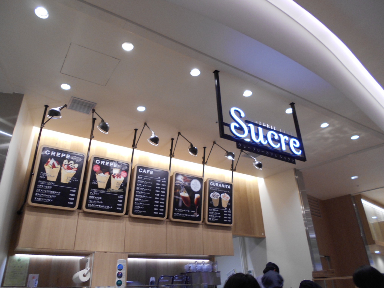 阪急ガーデンズのフードコートにあるクレープやさんです。生クリームやフルーツなどを使った甘めのものが多いですが、シンプルなバターシュガーの「シュクレ」というクレープがお気に入りです。