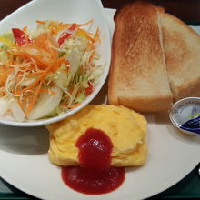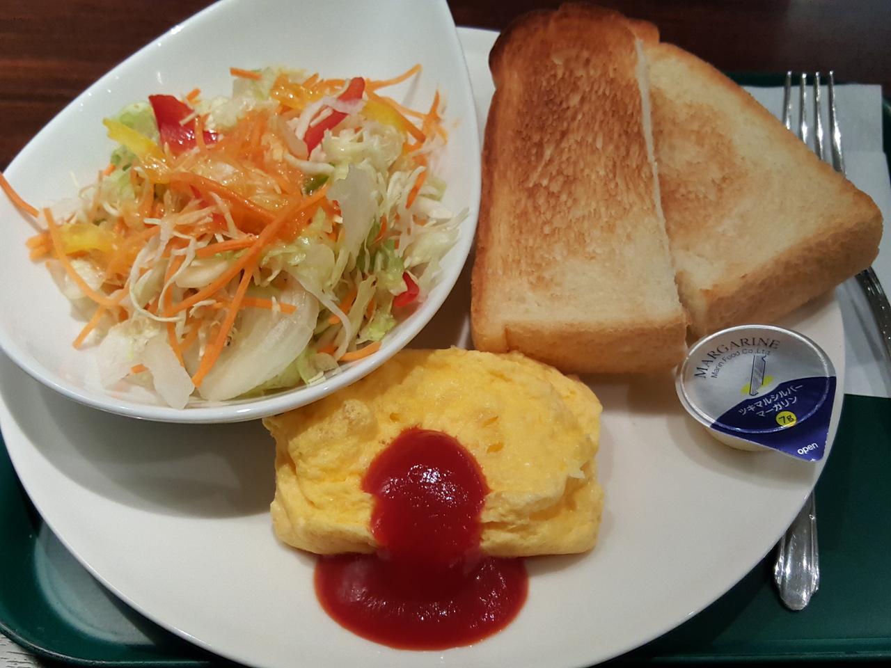 トースト・サラダ・オムレツでワンコインで食べられるのはリーズナブルですね。