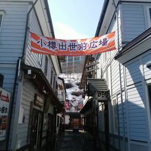 堺町本通りを散策していると、「小樽出世前広場」と書かれた大きな垂れ幕が目に留まったので立ち寄ってみました。大正から昭和初期のレトロな街並みを再現した一角には、飲食店や歴史館などがありました。雰囲気も良くノスタルジックな感覚を楽しむことができるスボットです。