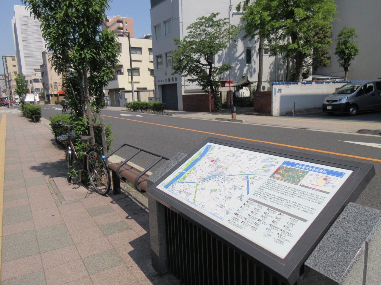 桜橋通りに面した本所高校の前の歩道に観光案内地図と共に越後長岡藩抱屋敷跡の説明があります。越後長岡藩藩主は幕末に代々老中を務めました。本所高校のそばの広い敷地が抱屋敷跡でした。藩が農地などを買い上げて個人の調度品を保管に使ったり下屋敷にしたようです。幕府から拝領した土地ではないから広大な領地を持つことができたことが分かります。現在の地図との比較が説明板にあるので領地の広さを実感できます。