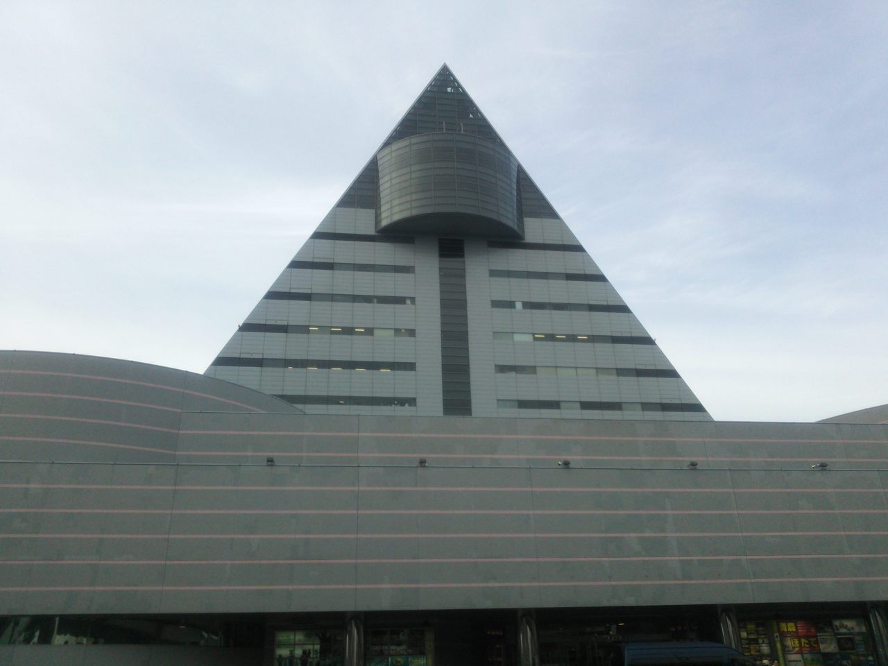 青森のシンボルタワーであるアスパム。三角の建物が特徴です。三角は、青森のAの形をイメージしたものだそうです。