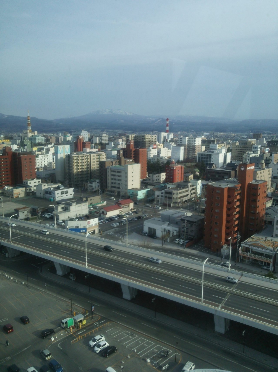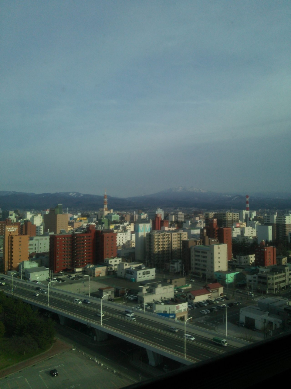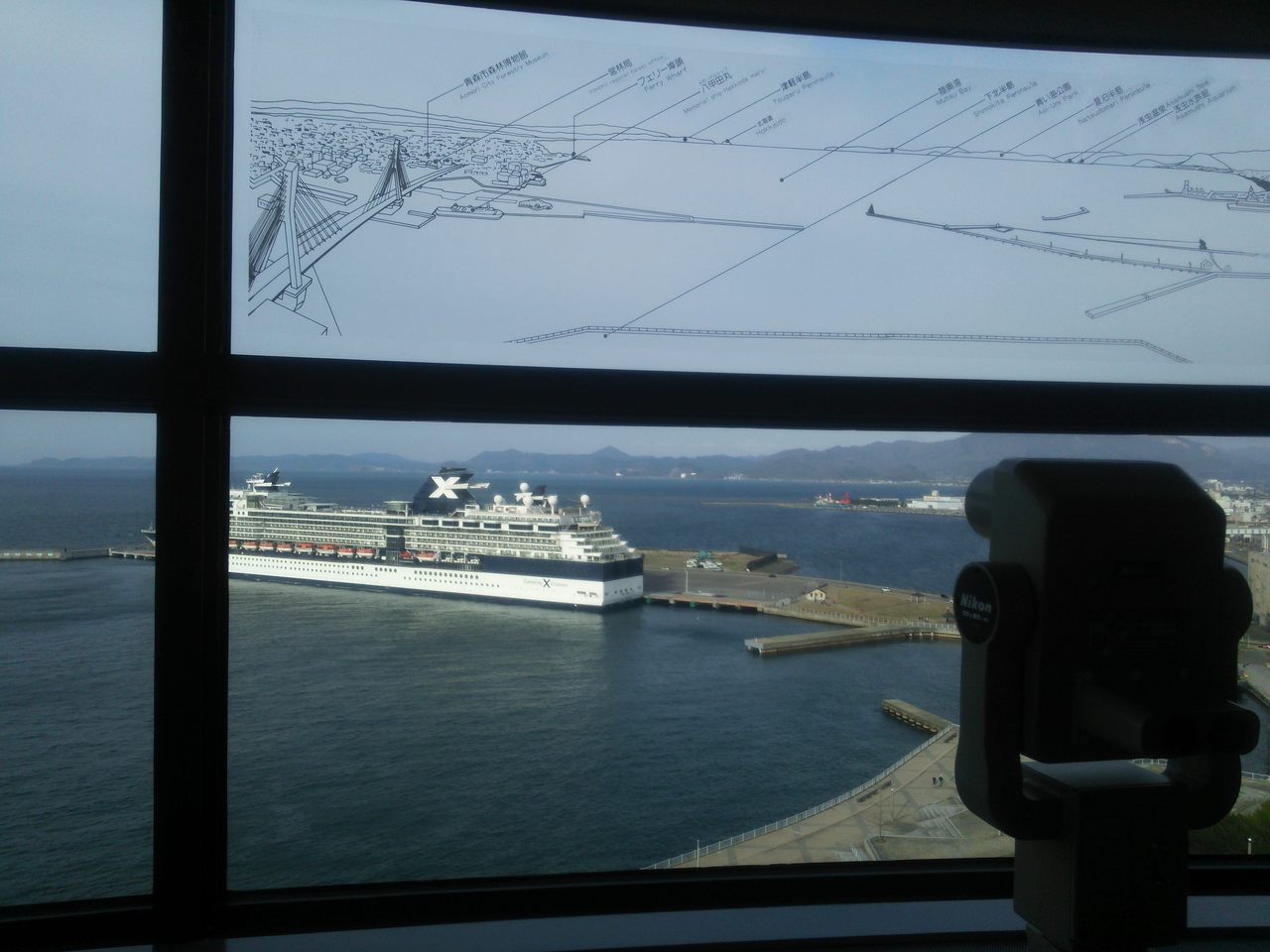 西側には青森ベイブリッジ、メモリアルシップ八甲田丸。南側には、残雪の八甲田の山々がキレイに眺められました。