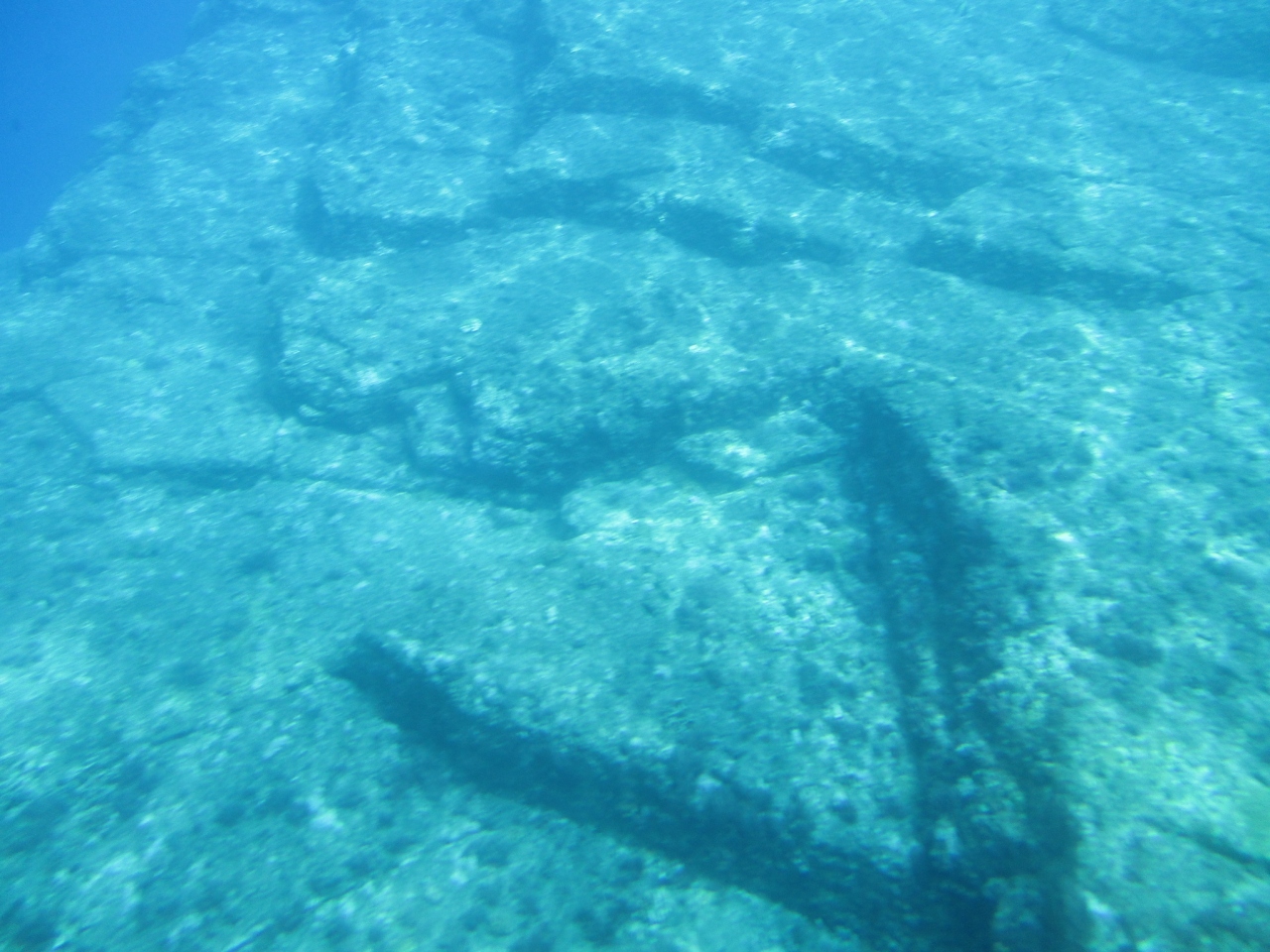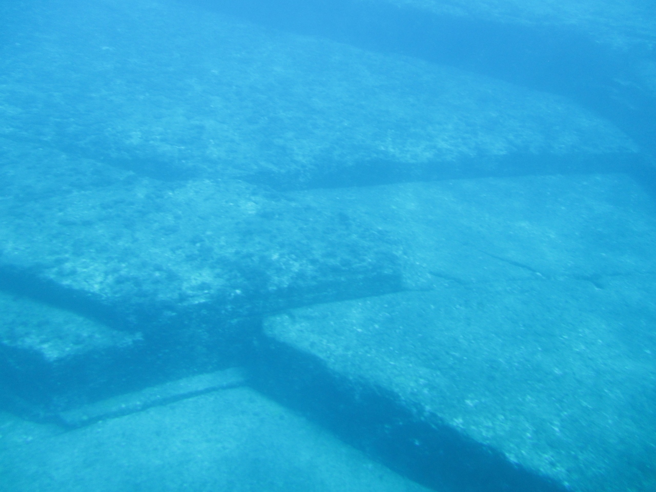 与那国島の南岸にある新川鼻の約50mの海底に沈む周囲数百メートルに及ぶ巨大な石の構造物です。案内してくれた人は、過去の人工的な遺跡が地盤沈下で海底に沈んだとの説明でしたが、地質学者および水中考古学者の間では自然の造形との見解があるそうです。