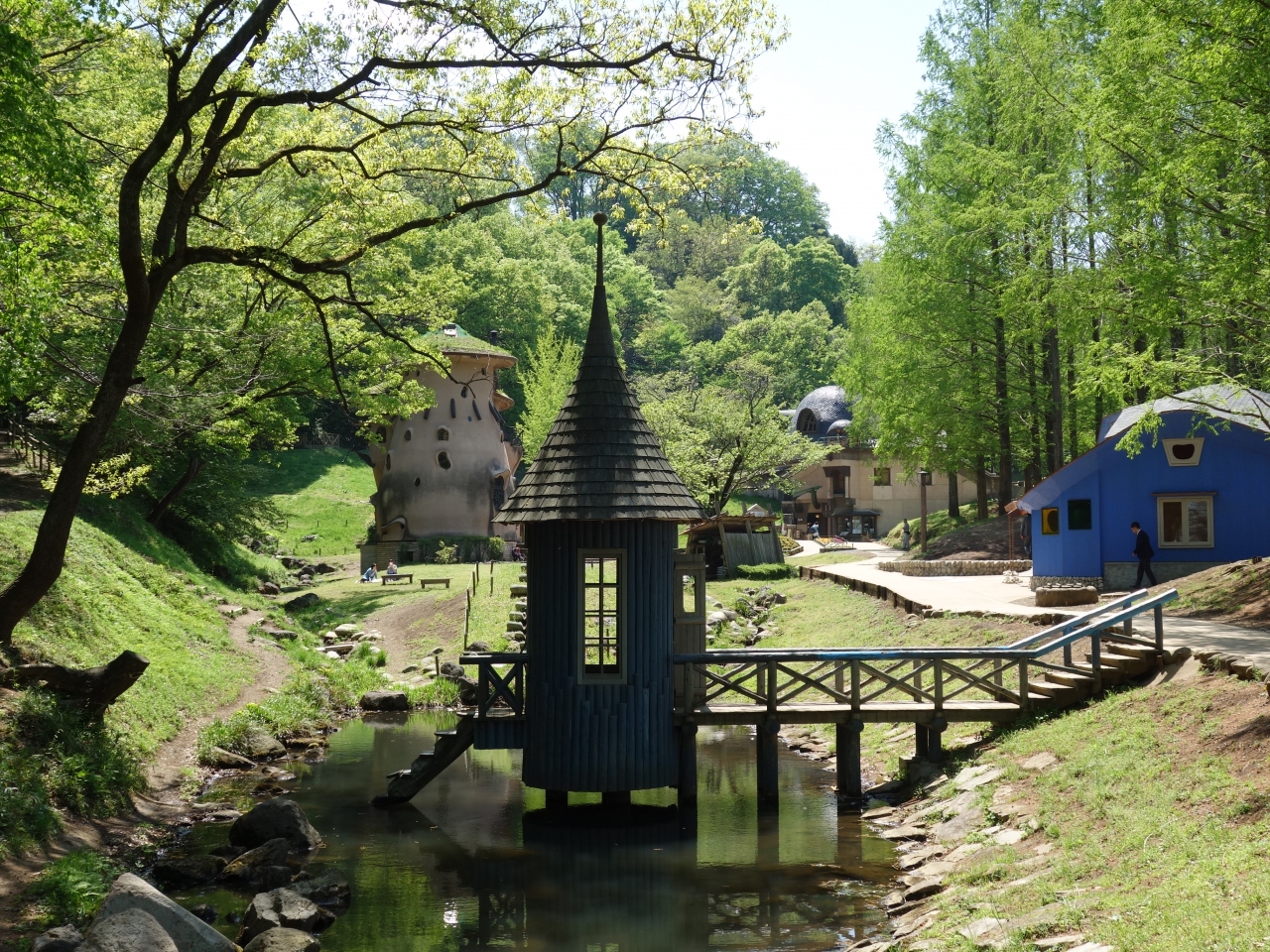 もこもこのキノコのような建物や、スナフキンが釣りをしていそうな青い小屋。