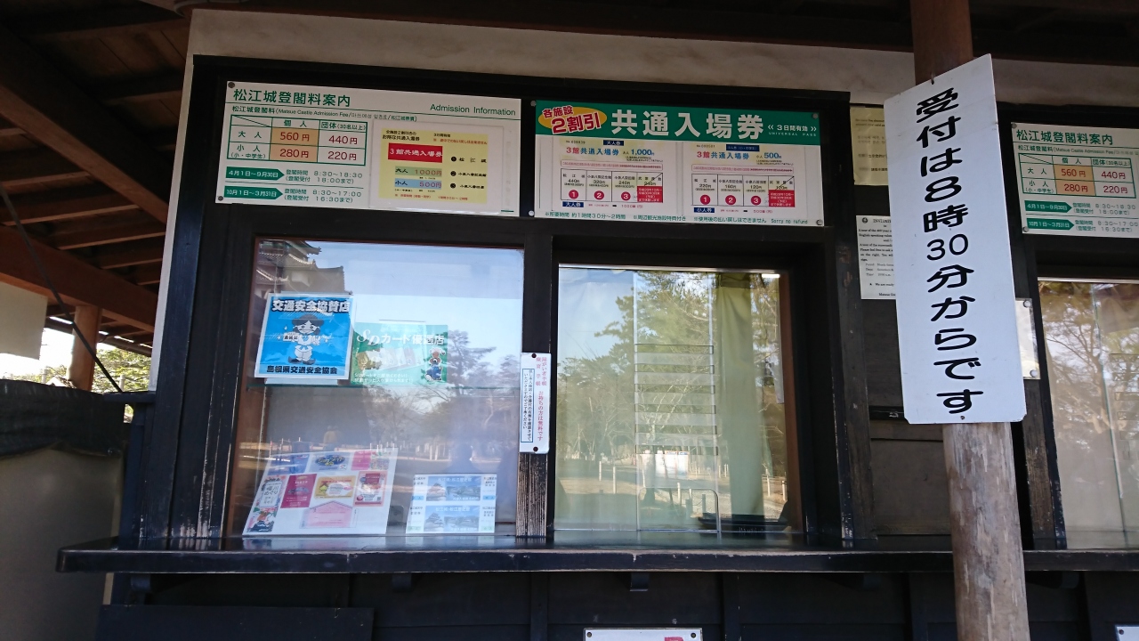 チケット売り場には「受け付けは8時30分から」と書かれていて、登閣料は560円でした。