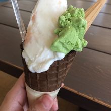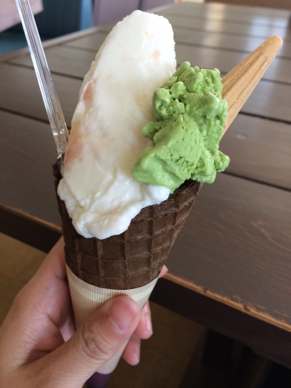 ももミルクというジェラートを食べましたが、美味しかったです☆シングルコーンで380円でした。